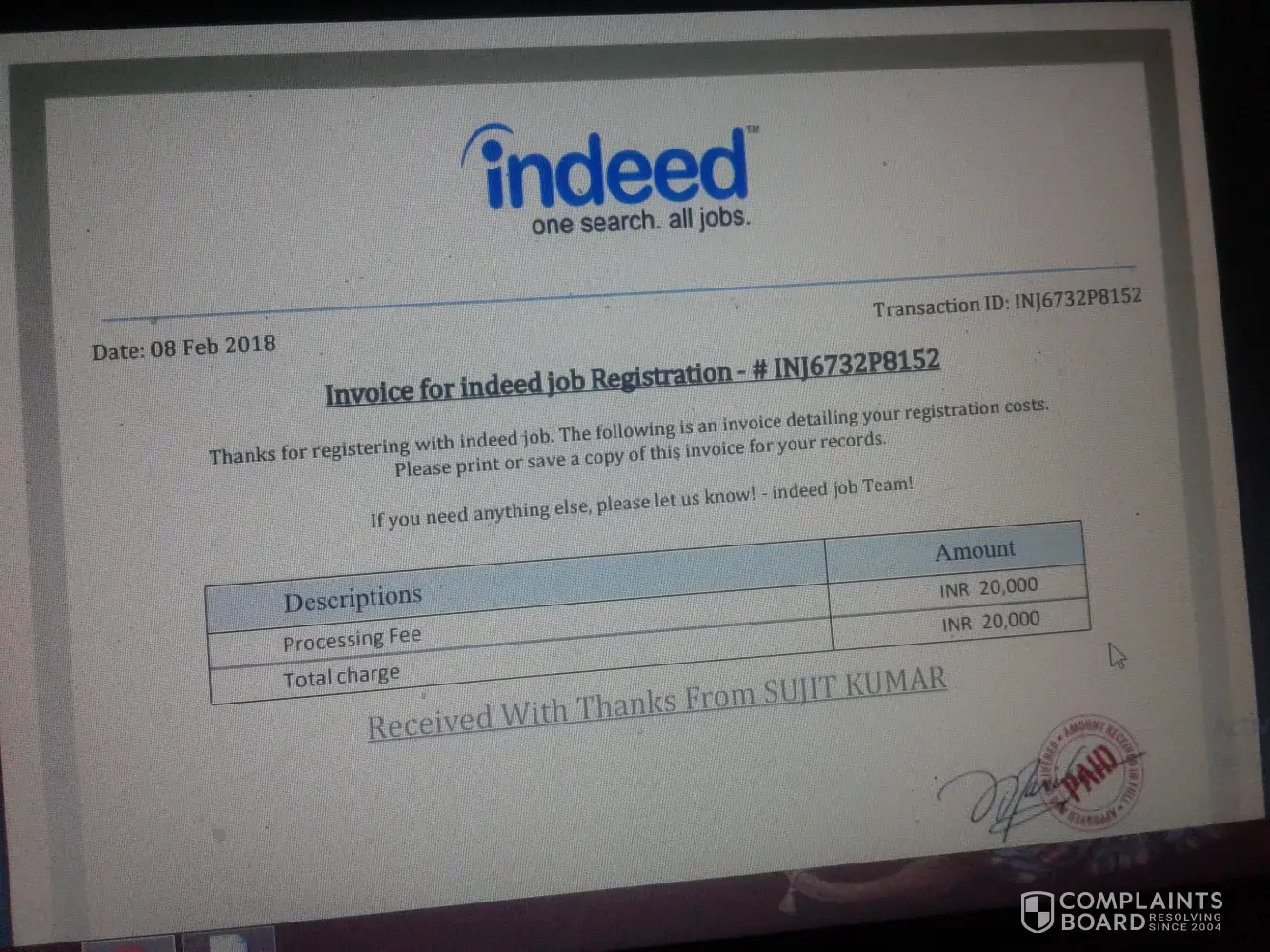 This is a complaint with regards to online fraud and cheating by Indeed employees from contact nos : #[protected] (Indeed paid services / Airtel / Delhi) & # [protected] (Airtel / Delhi)