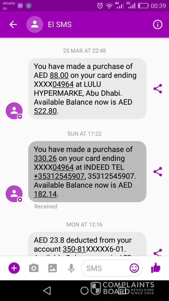 I got message that 330 AED has been deducted from my debit card on 1st april from indeed account which am not even using and disabled a month before.