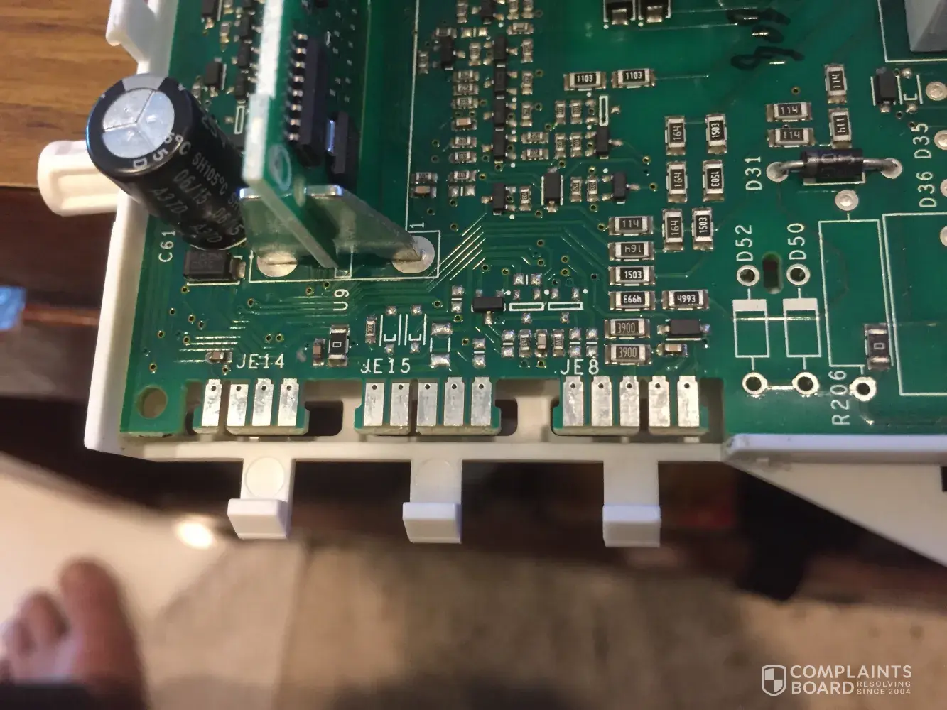 Out of all reported cases, 12 complaints (22%) have been marked as resolved, while 41 complaints (78%) remain unresolved. The most recent resolved complaint, washing machine design fault, provides additional insight into how customer issues have been handled.