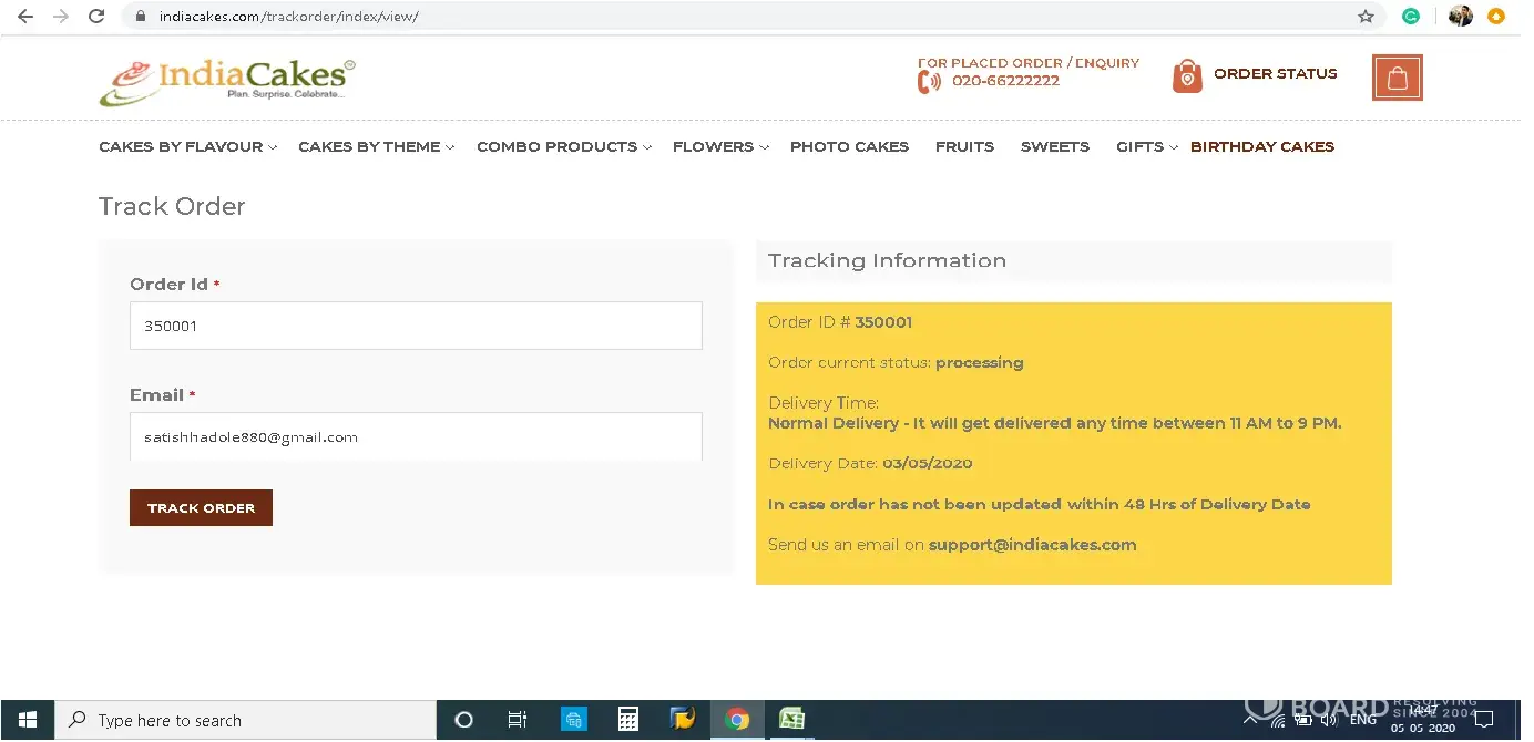 I have booked a birthday cake on 03.05.2020 and it has to be delivered on the same day.