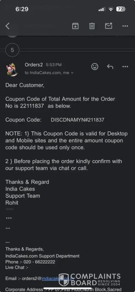This idiots are very disgusting, after cancellation of my order this stupids didn’t refund my amount- 1207 instead of that they send me a coupon code what the [censored] was that, I have never seen like this before, useless don’t refund your the beggars of Indiacakes so I donated the amount.
