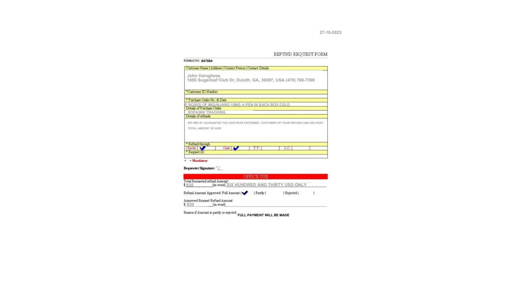 Desired outcome: i want my money - 47200rs total amount