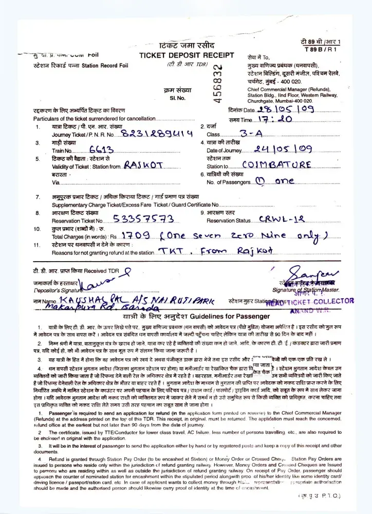 Indian Railways railways refund