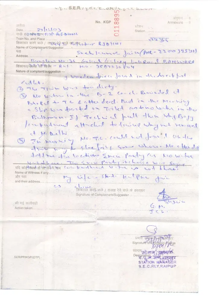 Indian Railways Complaints Page 5 of 7