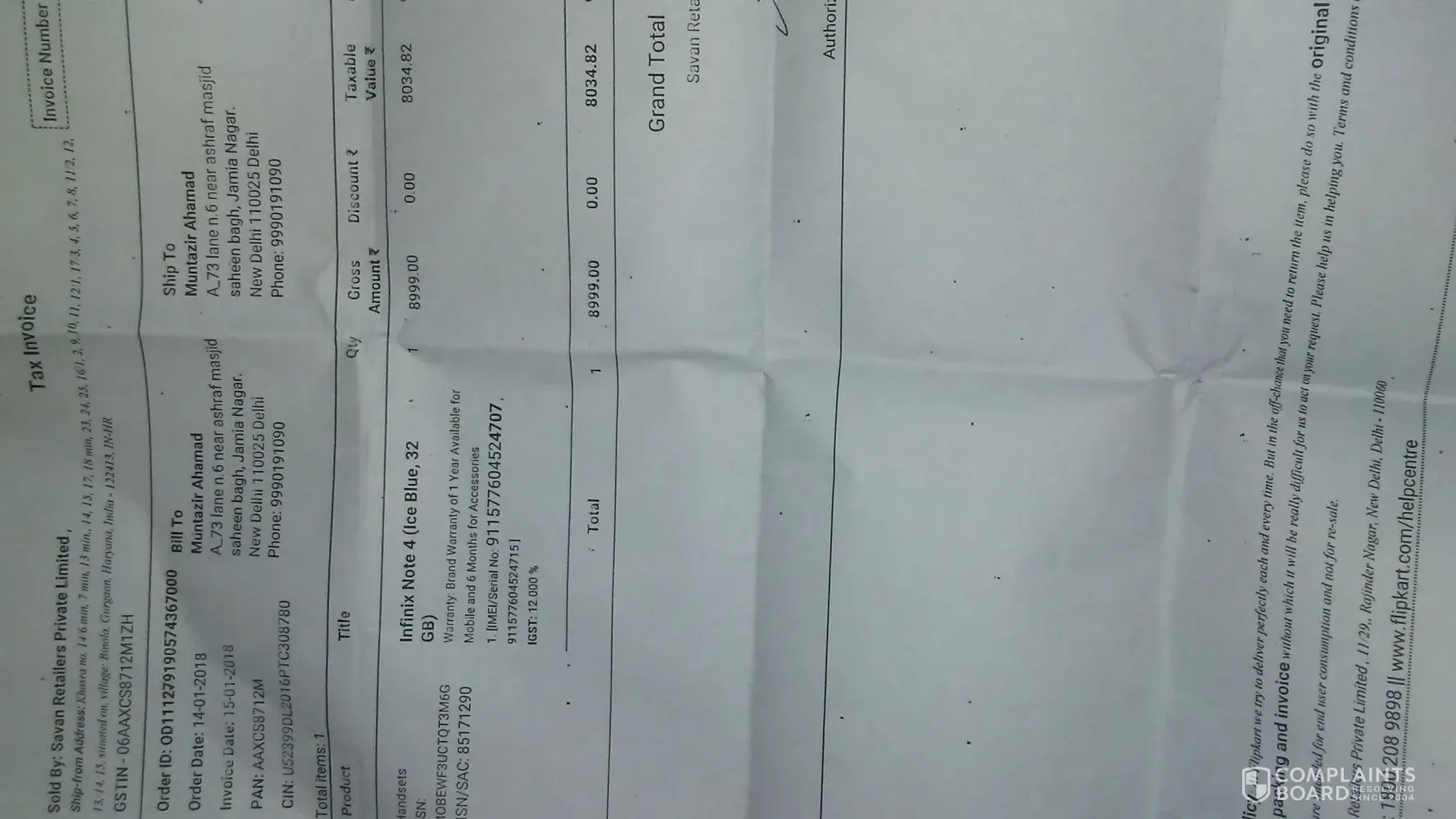 I have purchase infinix note 4 mobile yesterday amount of Rs.17, 500/-