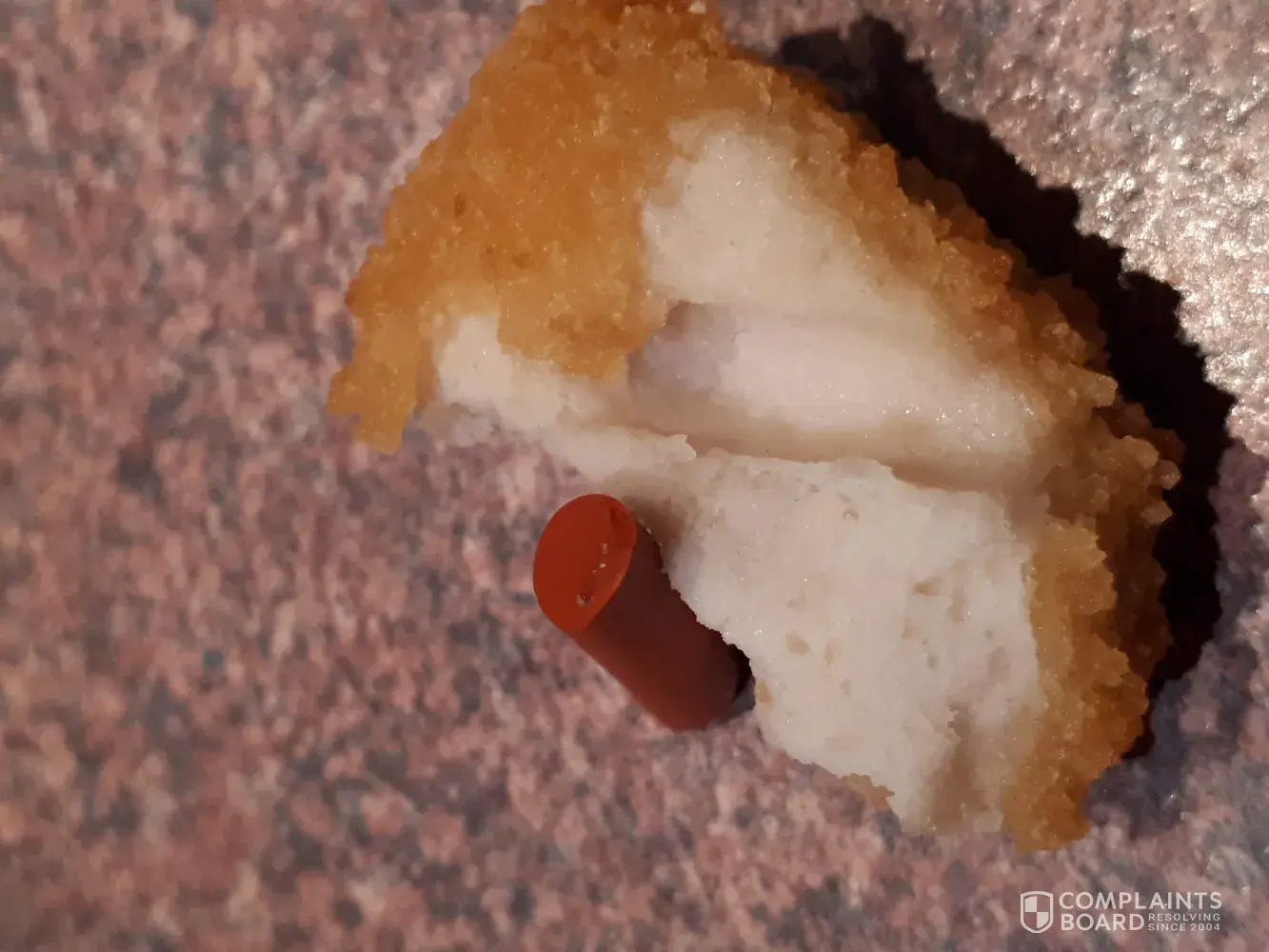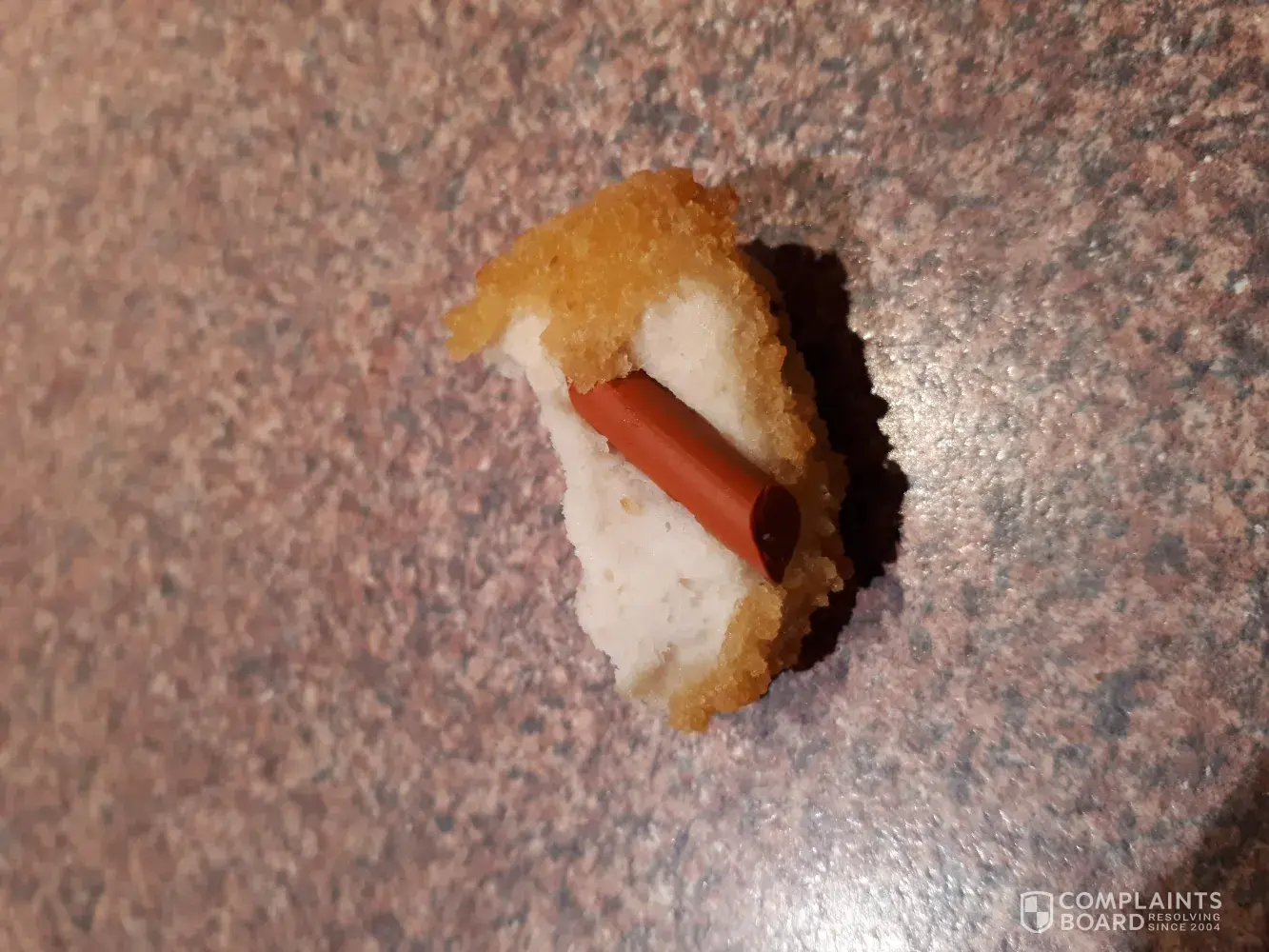 A few weeks ago (1st Sept 2019) we served our small kids (aged 7 and 4) some Inghams Chicken Nuggets and were shocked to find a 2cm piece of orange rubber inside one of the nuggets. I'm not sure what it is and where it came from but we're very lucky the kids didn't eat it as this could have caused major health problems! Please investigate further, I still have the object if required and see photos attached. I look forward to your response.