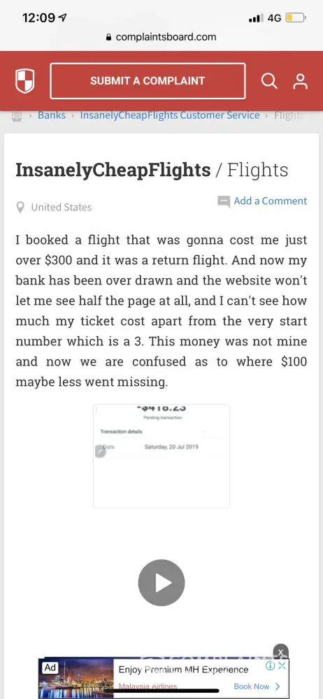 Our conclusion: ComplaintsBoard's comprehensive research indicates that Insanely Cheap Flights is highly unreliable and may be operating as a scam. We advise against dealing with Insanely Cheap Flights to prevent potential harm. If you notice any suspicious behavior, report it by writing a complaint.