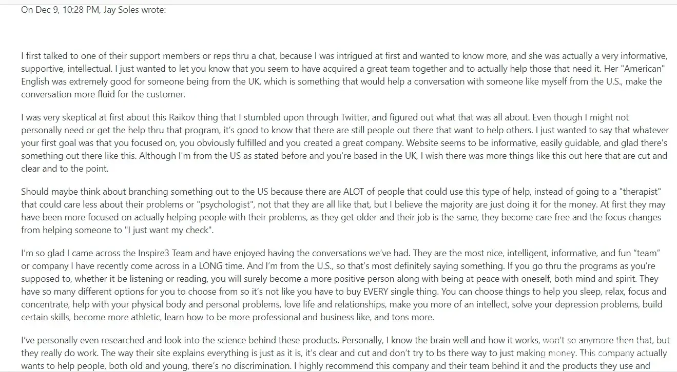 I have also been solicited by another company associated with this co promoting The Raikov Effect after sharing my email address with Inspire3.