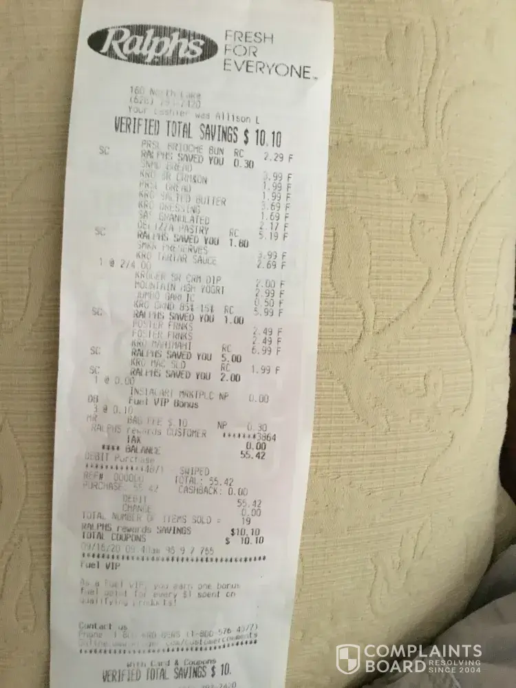 I placed a grocery order w/Ralph's and my email receipt net total for groceries was 70.21. However, there was a Ralphs register receipt inside for a total of 55.42. Clearly the difference was from in store promotions on the items. So the difference is considerable- 14.79. Who got this savings? And if it is Instacart, why wasn't I alerted to this and why are you still charging service Fee?!
