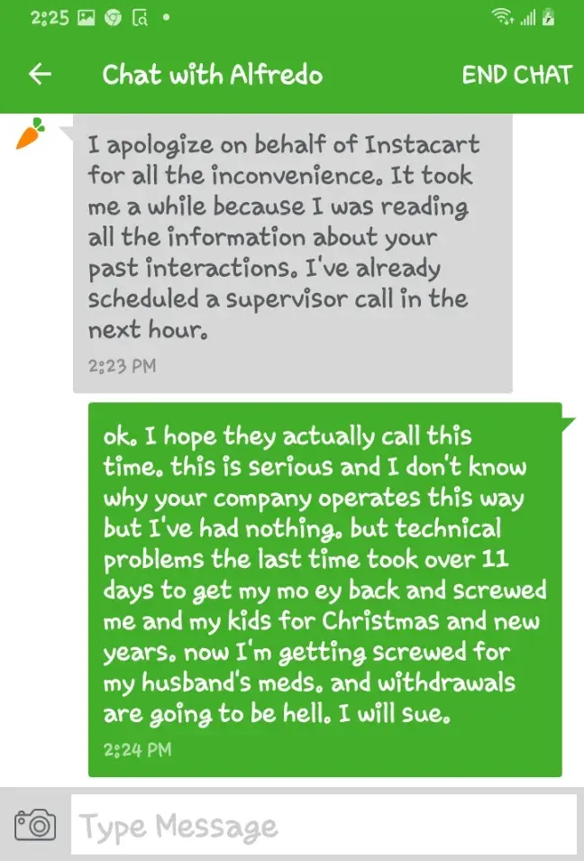 They have millions of customers happy, very few unhappy. I mean unhappy with a good reason like your reason. You are part of perhaps 0.02% of tricky problem that Instacart won't take care of.