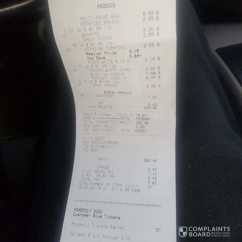 I know we are all facing hard times now. But to take money for no products or services is HORRIBLE! Your lack of resolving this over the past week or so is the opposite of why I use to shop at Publix. I am dissatisfied and disappointed in Publix and its leadership.