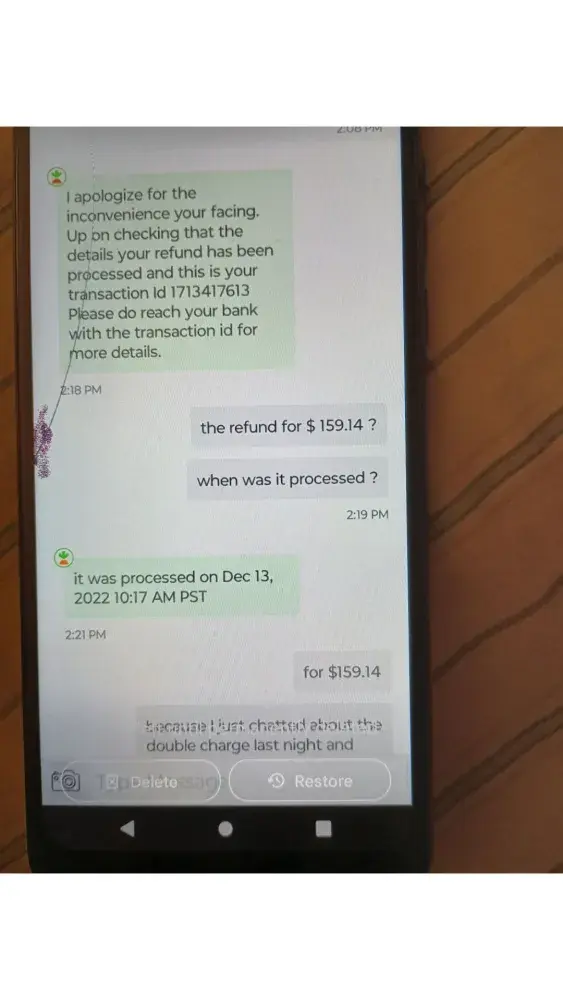 On December 13,2022 I placed an order with Instacart the total amount was $159.14 plus a $21.51 delivery fee that was supposed to be free for that order. Instacart took the $149.14 out of my account on December 13th and,14. I have contacted Instacart multiple times about this matter to either be ignored or get no resolution. Because they took it upon themselves to double charge me it overdrafted my account. I had to pay overdraft fees plus come up with the extra money to put back back in my account to recover my bills. This has been one of the most horrible experiences of my life and don't recommend Instacart to anyone ever. One representative told me my refund was processed and would be back in my account in 10-14 days and it never was.