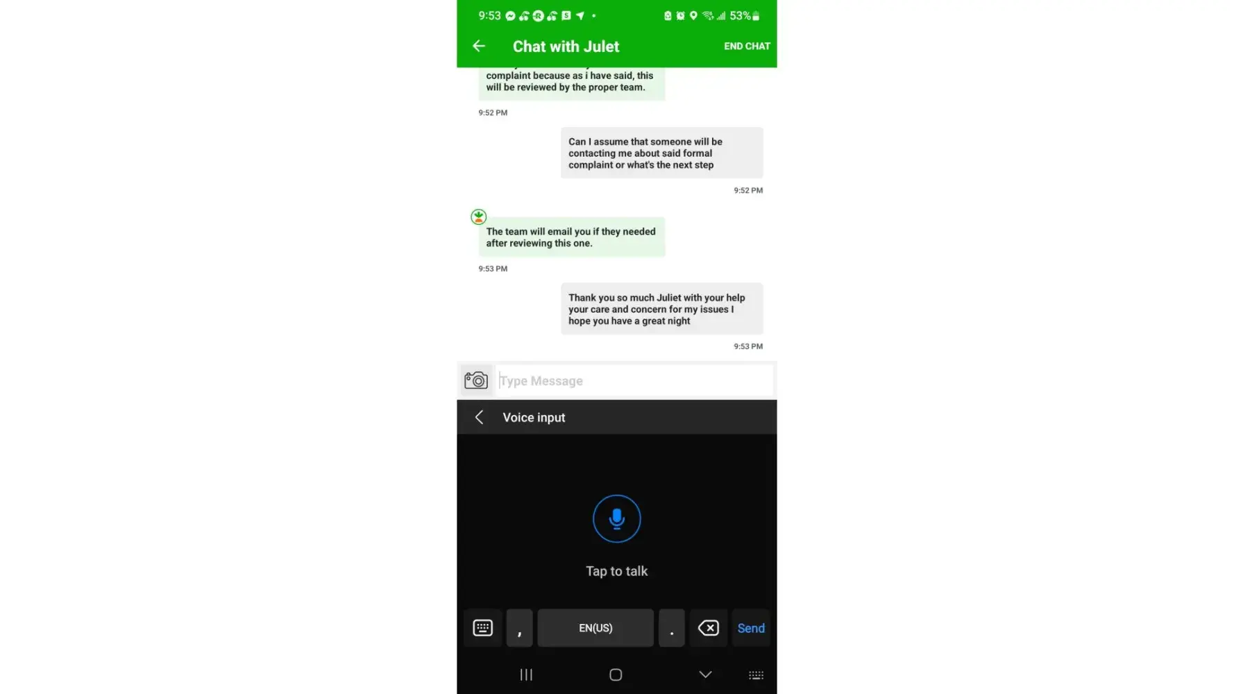 After getting NO WHERE with the rep she disconnected the chat while we were still actively communicating. I am SO upset.