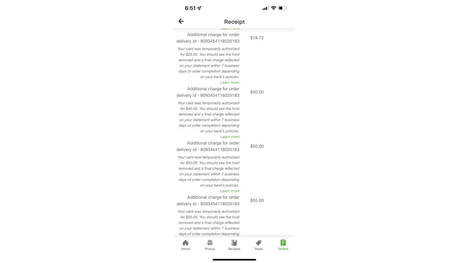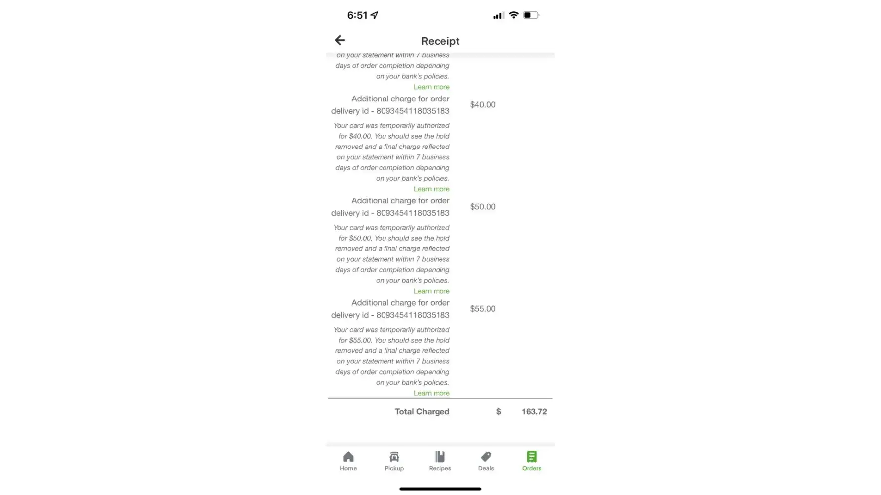 Do not use! They will charge you and estimated amount and supposed to release when order amount goes through… three times they have held both! I was due to see a mlb game and woke up to -13 in my bank and was unable to go or access my money. My bank is always extremely fast with deposits or refunds and they kept blaming the bank taking no responsibility! I was a long time frequent customer told them only way i’d stay if they gave me compensation with free 1/2 year membership they declined to keep me so now i’ll use walmart and shipt. Never have issues with them