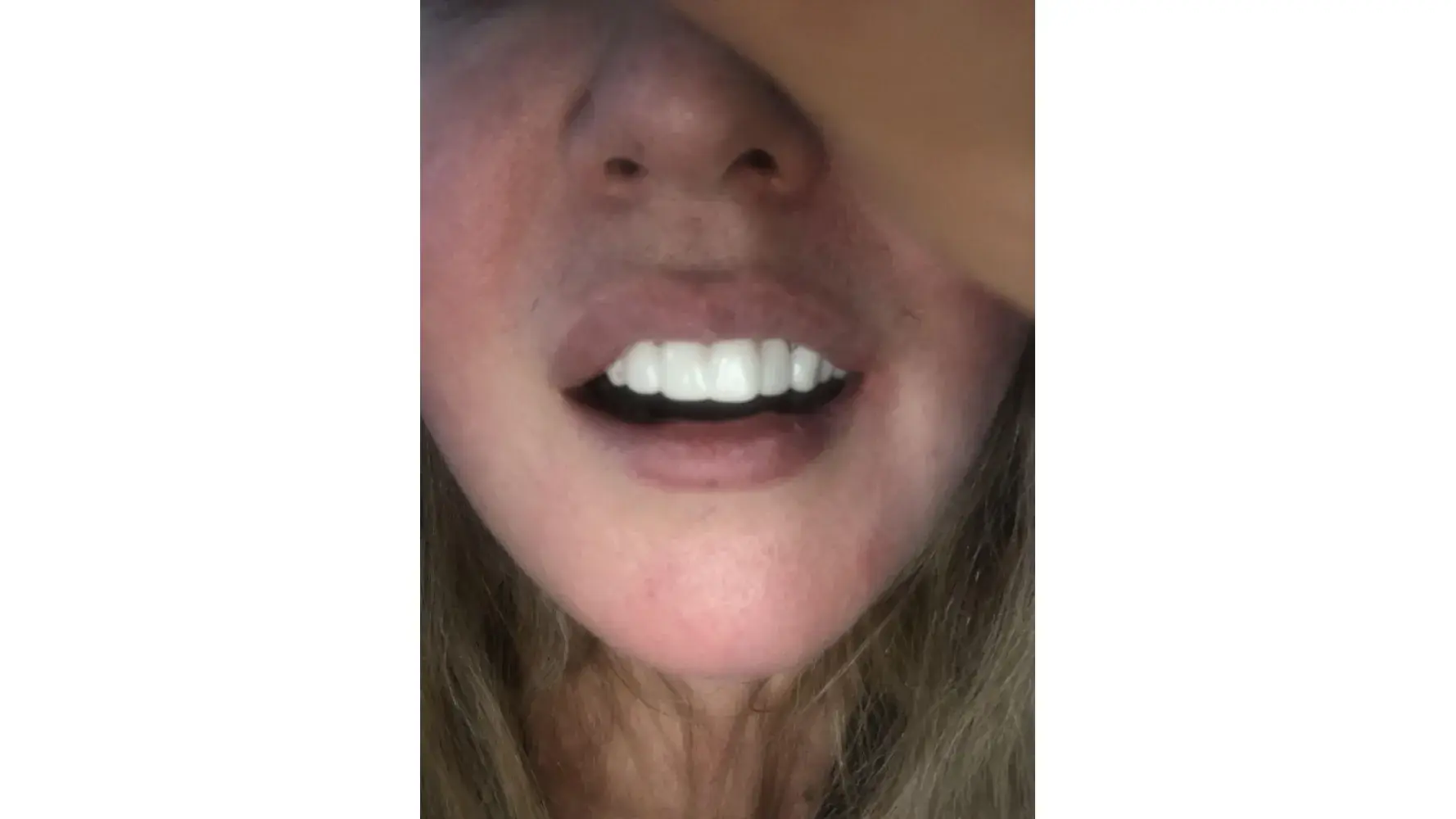 Bottom veneers, as per the image, do not fit correctly as they are not aligned with the gum line and my natural teeth are showing.