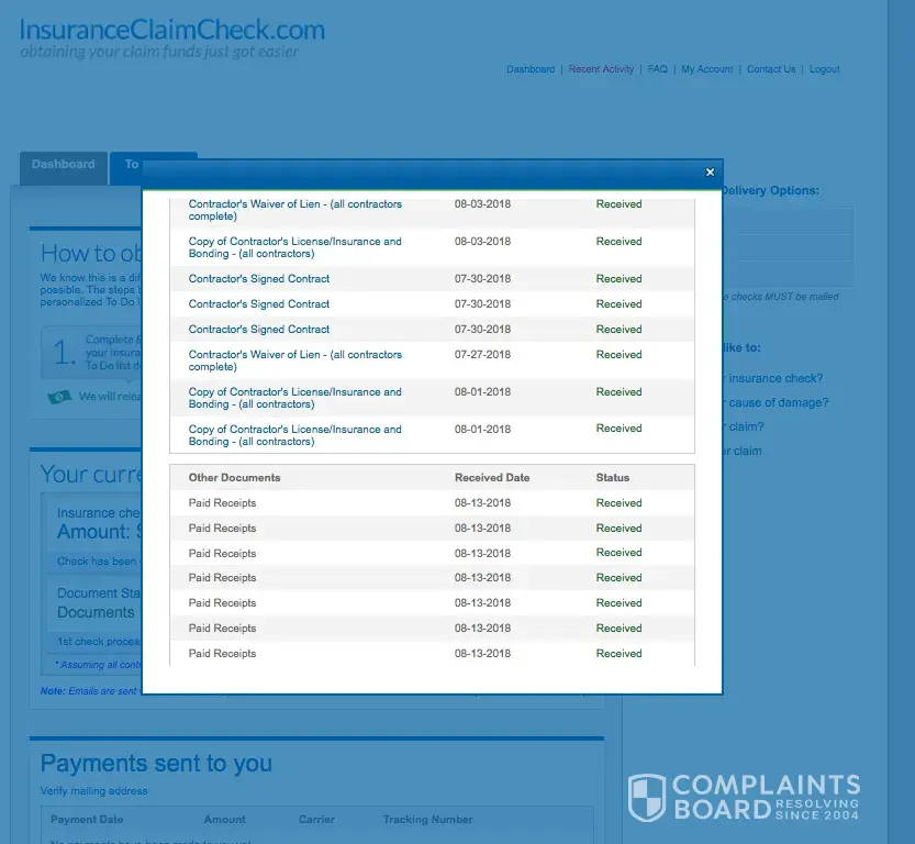 Instead, they set up an inspection to confirm the expenses I paid for were completed. The independent inspector they sent came out twice and concluded at least 70% of the repairs were completed. ICC fiddled around with the reports "Review in Process" for nearly a week before they started processing the first check disbursement check for only one of the many items already completed... During which time I upload more paid receipts, photos of more items being completed, and written letters requesting reimbursements, at least up to the 70% of the insurance claim settlement check I sent them. Nada, Zilch!