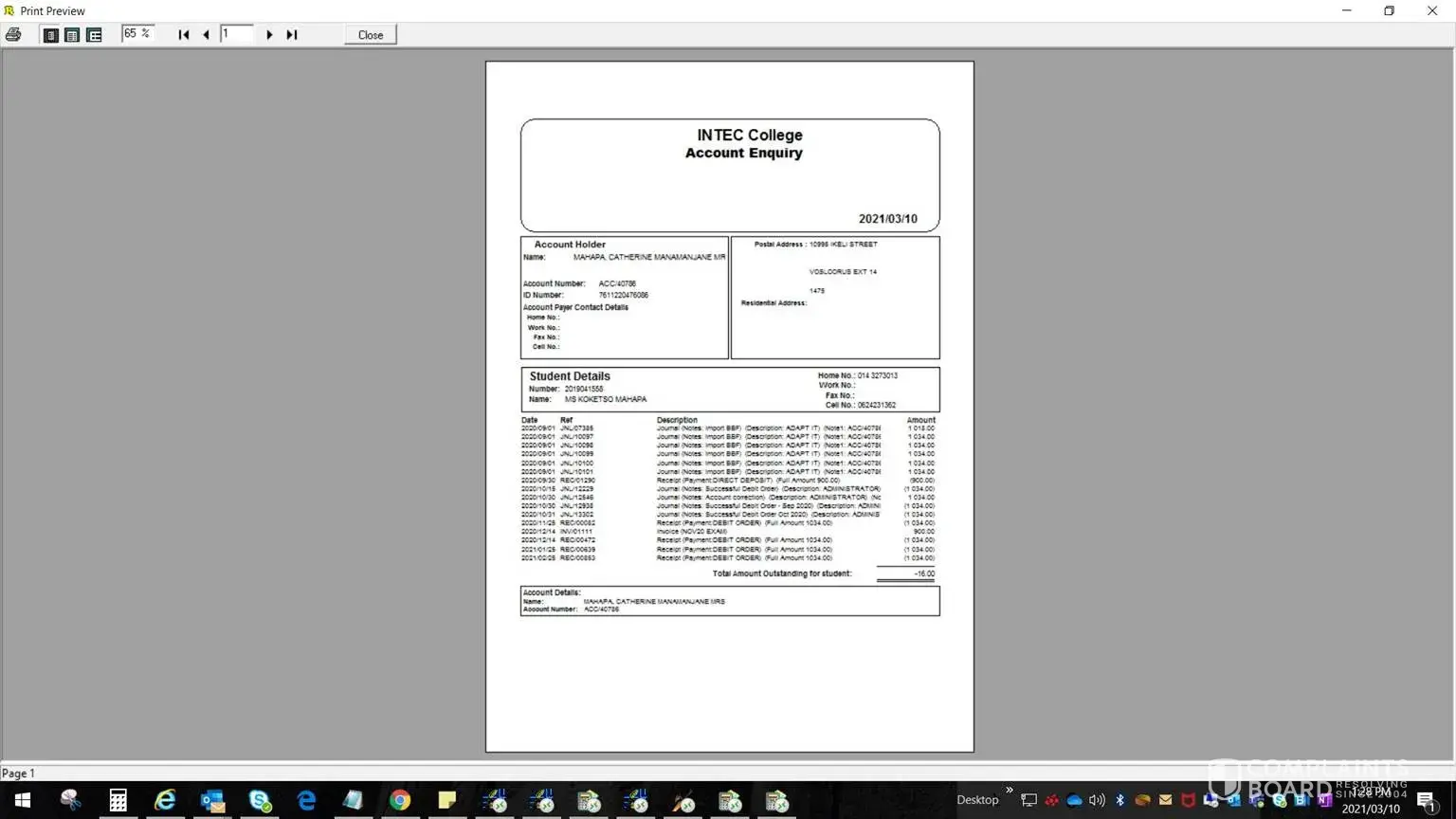 It took 6 months to change over from INTEC bookkeeping short course certificate to the certificate in ACCOUNTING NQF 5 course. There were also endless struggles regarding my funds that needed to be transferred from Damelin to INTEC. In all this time my STUDENT PORTAL was still not sorted out so I could study.
