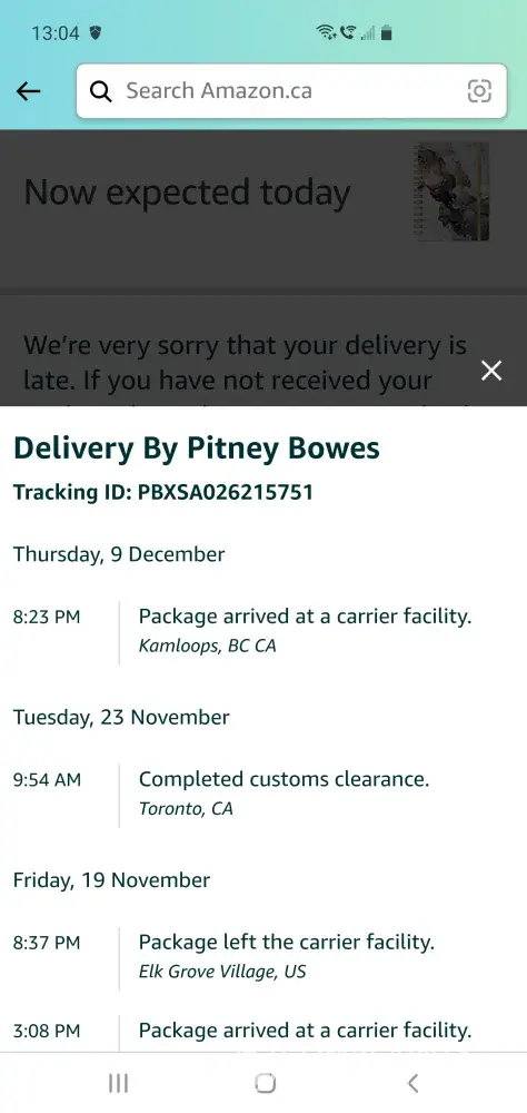 My parcel from the uk was customs cleared on december 8 in Ontario.