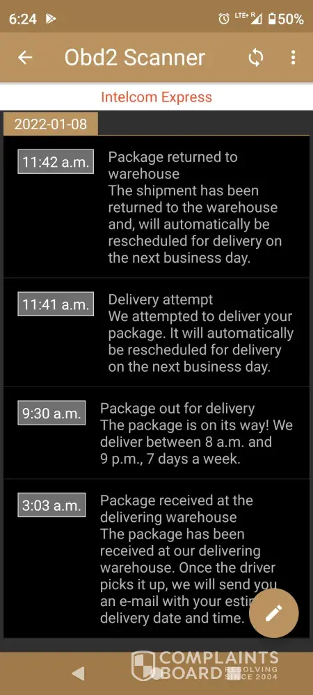 - Incident: On tracking page it says that the item was out for delivery but later marked as Delivery attempted and re-scheduled, which is not true, as I had provided exact information of the address and even a buzzer number, which they didn't use (as it's linked to my phone). This is the 5th package in a row that Intelcom does this for in the last 3 months, and every time they get the address entered wrong in their GPS. Additionally the drivers have repeatedly taken the packages somewhere else. I've already presented a formal complaint to ebay and the seller.