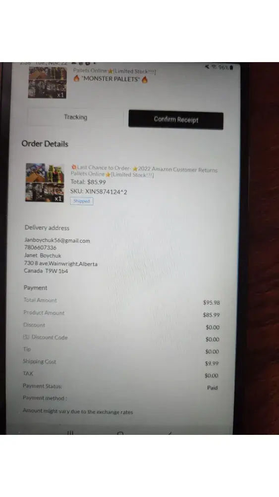 Assuming this a pallett and your tracking system says delivered on November 6, 2022. This did not get to 730 8 ave wainwright. Do not know where it was delivered. It snowed heavily on the 6th an there was no footprints leading to my front door. We are usually home early afternoon. Best gift just tells me that it was delivered and signed for and to go after intelcom. Now I am stuck with no products and I paid the bill. After 4 phone calls and many emails I've not gotten any farther ahead. This is not good business. I never received a call or email stating when the driver would be here. Your website paints a pretty picture. My cimplai t is on the driver who cannot find a proper address and drops packages off wherever they can. ive checked with our post office and they deal with these issues with your company constantly. Wainwright even has a Facebook page dealing with lost packages and packages that do not belong to them. Intelcom seem to top the list. Please respond to me as I would like this dealt with. Thank you