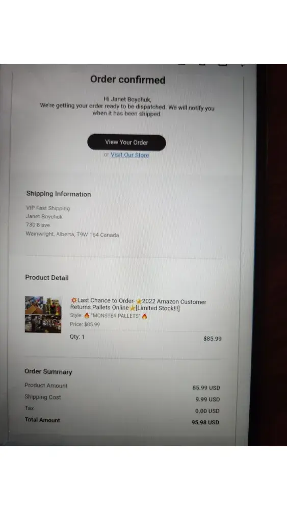 My package was an 2022 Amazon customer returns palletts online. Style monster palletts.