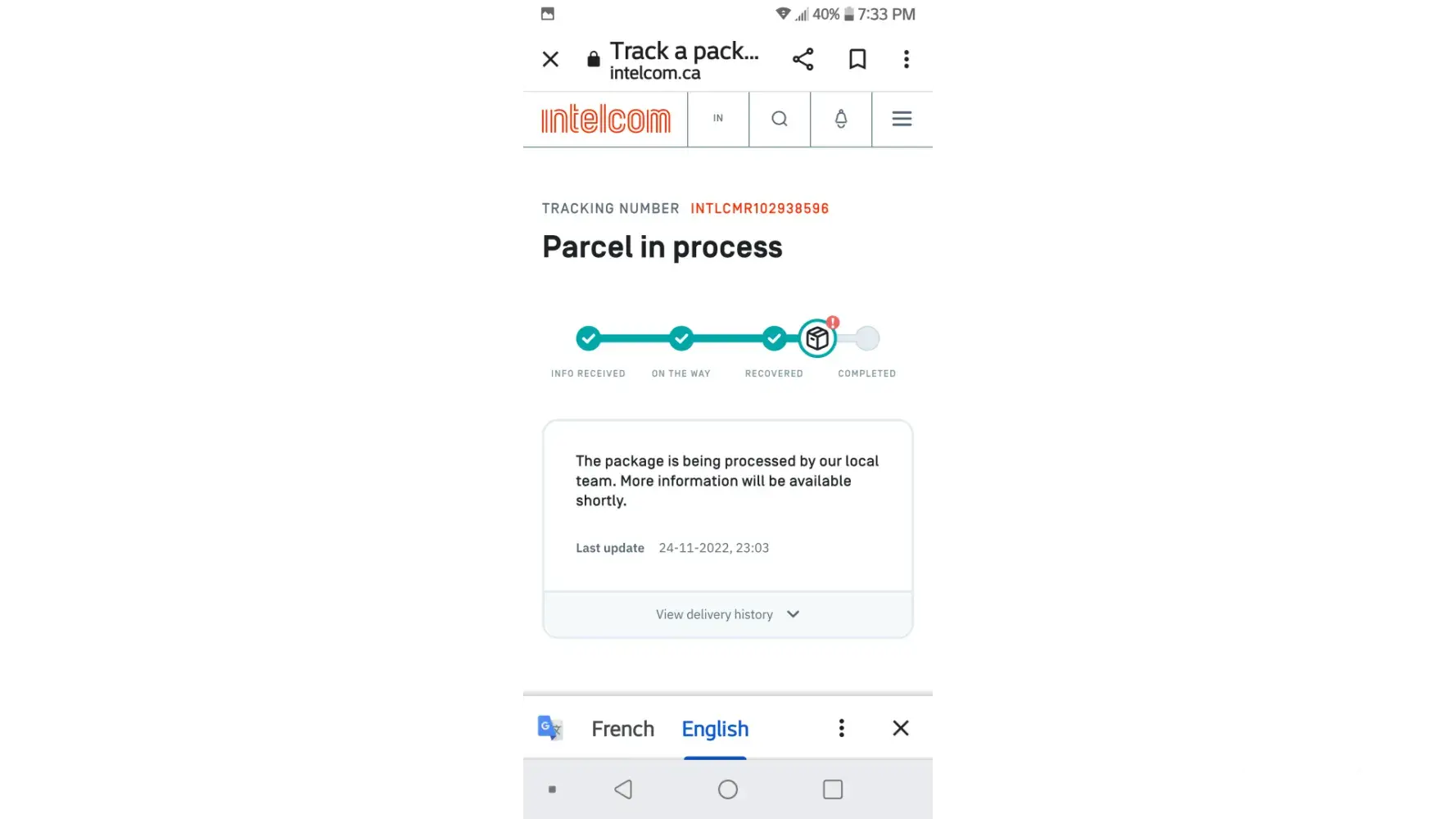 Desired outcome: Get my parcels who still in the Intelcom warehouse in Quebec to be deliver to my house as soon as possible. Here the tracking number: [protected] and [protected] Blandine Aubertin 3040 Ch du Lac Sept-ÃŽles St-Raymond, QC, G3L2S4