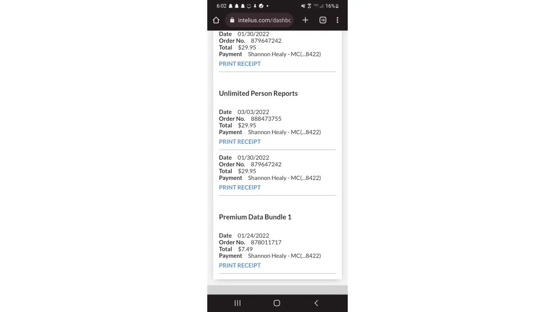 The charge on 12/5/22 is nowhere on my order history page, or anywhere in my intelius account, just in my checking account history.