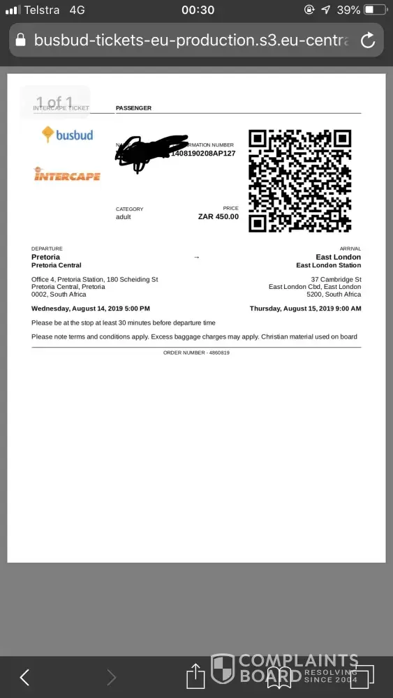 I have also been a happy and always supportive client of Intercape, until today, and no more ...