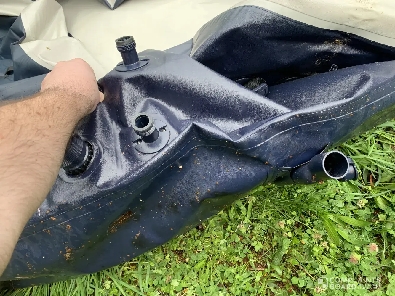 When I got to the water and pumped it up there was a hole in the pontoon. Luckily I brought the patches that came with the kayak and patched the hole.