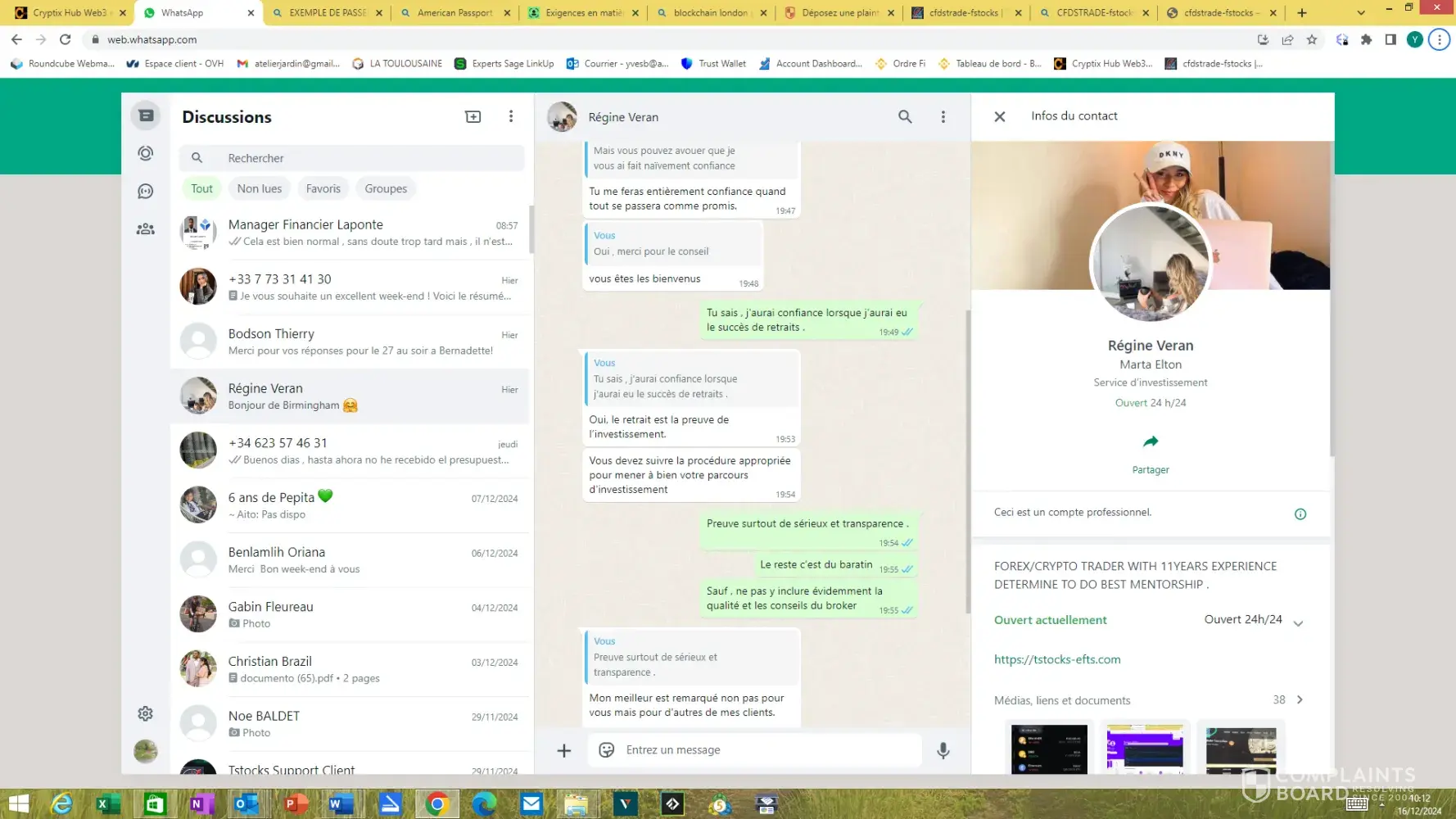 Bonjour, J'ai investi depuis janvier 2024, je n'arrive à faire aucun retrait depuis des mois d'essai. Mon compte est aujourd'hui à 202 000 euros, virtuel ou non. Ils disent qu'aujourd'hui, je peux retirer... mais je me méfie de leurs pratiques et ne suis pas sûr que j'aurai le succès qu'ils prétendent donner. La personne ci dessous, dénommée Regine...