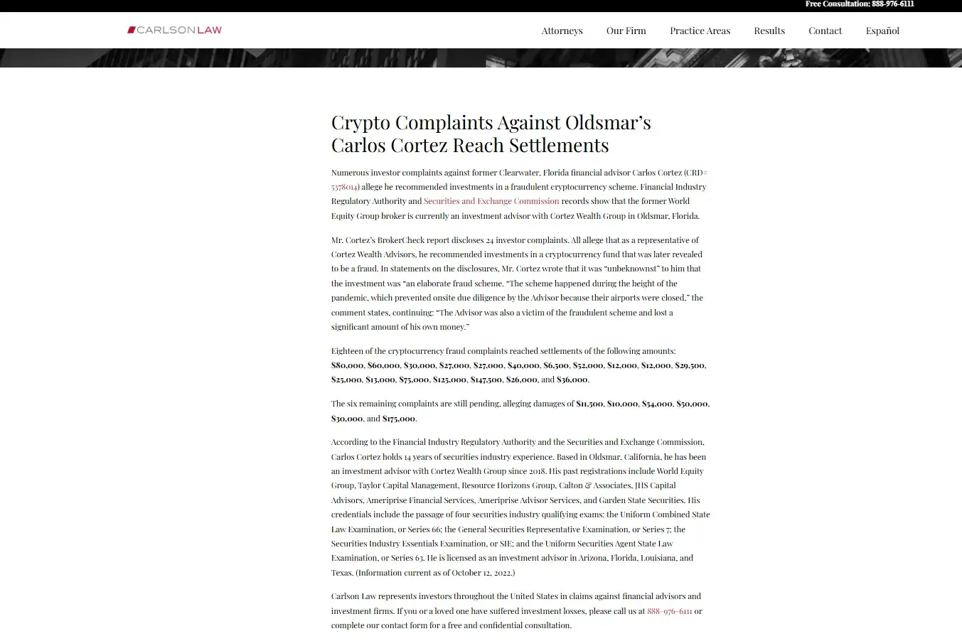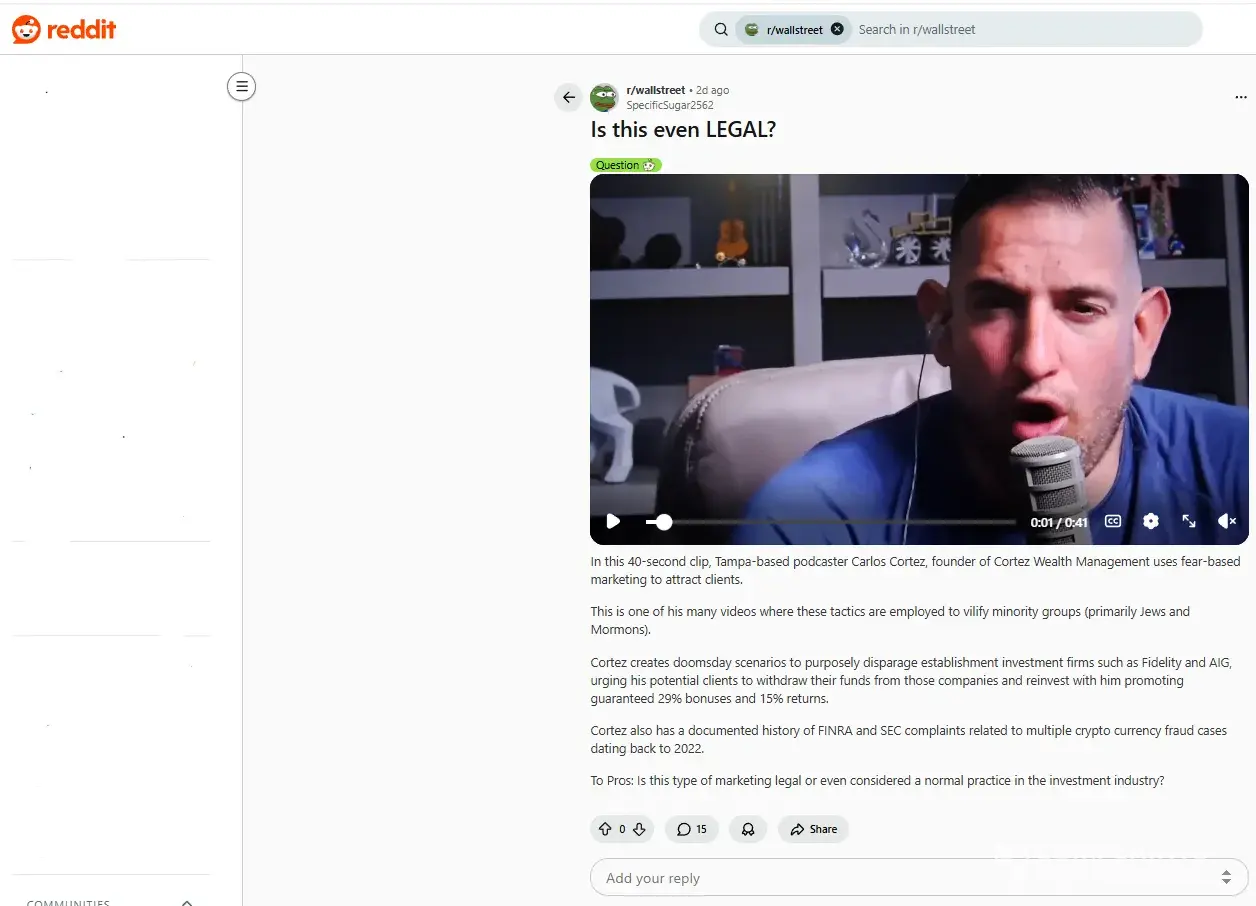 On October 10, 2025, I scheduled a consultation with an advisor from Cortez Wealth Management (Tampa Bay, FL area) to discuss options for protecting my retirement portfolio amid market uncertainty. The session lasted about 45 minutes, starting at 2 PM ET, and involved no financial commitment from me—just an initial discussion. No order number or contract...