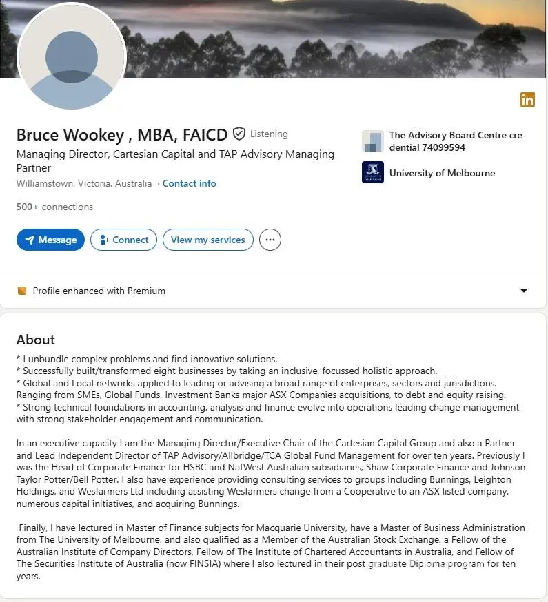 Bruce Wookey | Cartesian Capital Group Fraud - Impersonation and misrepresentation