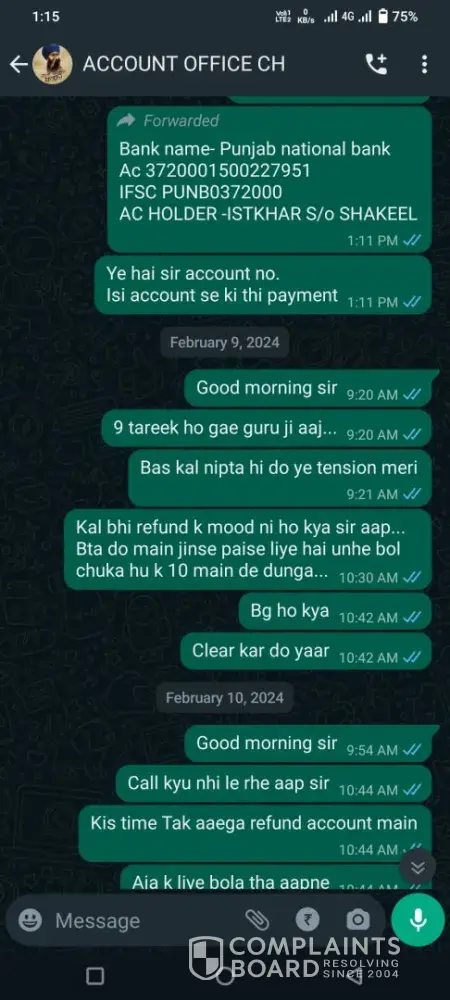 Read full complaintRudraksha Group Overseas Solution - Regarding money refund