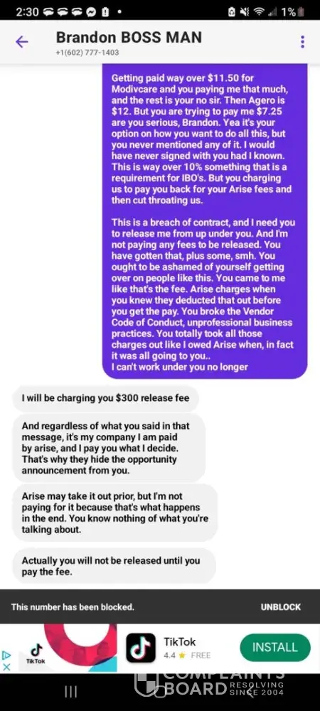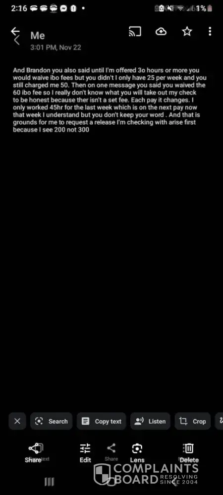Read full complaintMcH Management LLC - IBO - holding my check will not release me