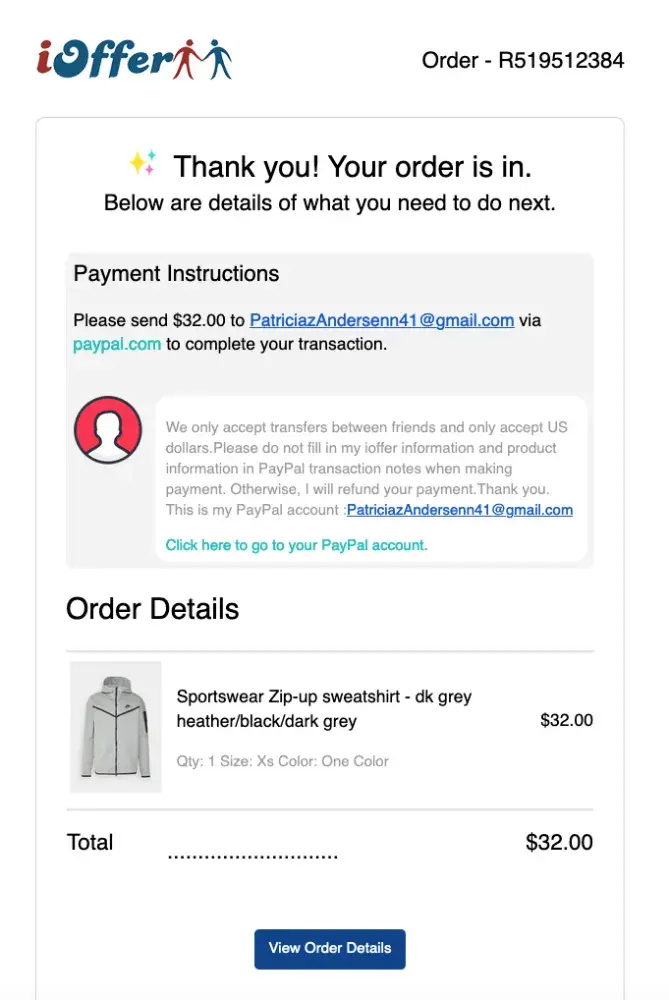 When I contacted pay pal about the issue, the seller claimed that my order was scheduled to be shipped out that day, but since the money was now being withheld, it would not be shipped. I was really disappointed by this whole experience, and it was my first time using ioffer. I don't think I'll be using it again because the customer service is terrible, and there's no way to make a formal complaint. They will try to rip you off and claim that you haven't paid when you have. I will definitely be staying away from this site in the future.