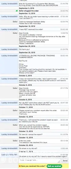 I have messaged her so many times regarding bag and tracking number if she's talking to refund me might as well get something out of it but I'm very stressed out and I feel like this is fraud .