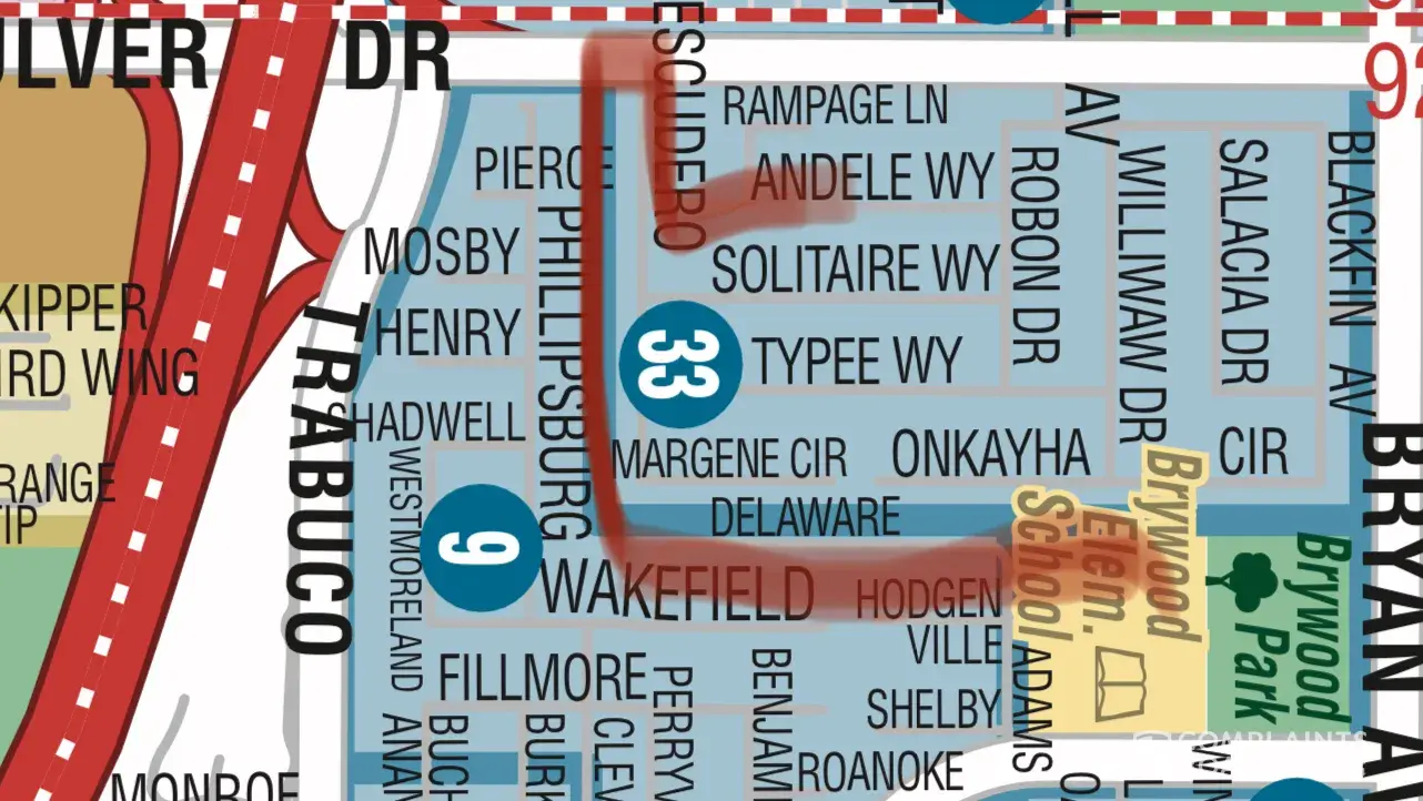 This incident took place Wednesday, March 4th, around 7:55 am. We were walking our normal route to Brywood school and we couldn't go because the road was blocked due to trimming the trees. We were almost late to school. I had to run back home with my 2 children and get in the car and drive. This is very frustrating because there is no notice to when they will be closing the road. We leave to walk to school at 7:50 am and get to school by 8:10 at Brywood. They need to start later if they are going to close the road. The way we go is Escudero onto culver and we take the green belt there between Trabuco and Escudero. We live off of Andele Way in the Raquet club and take Andele Way To the green belt to Deleware to Brywood. I have attached photos and a map and drew in red our route to school. I am just so upset that we didn't go to school our normal way. Something needs to be done about this.