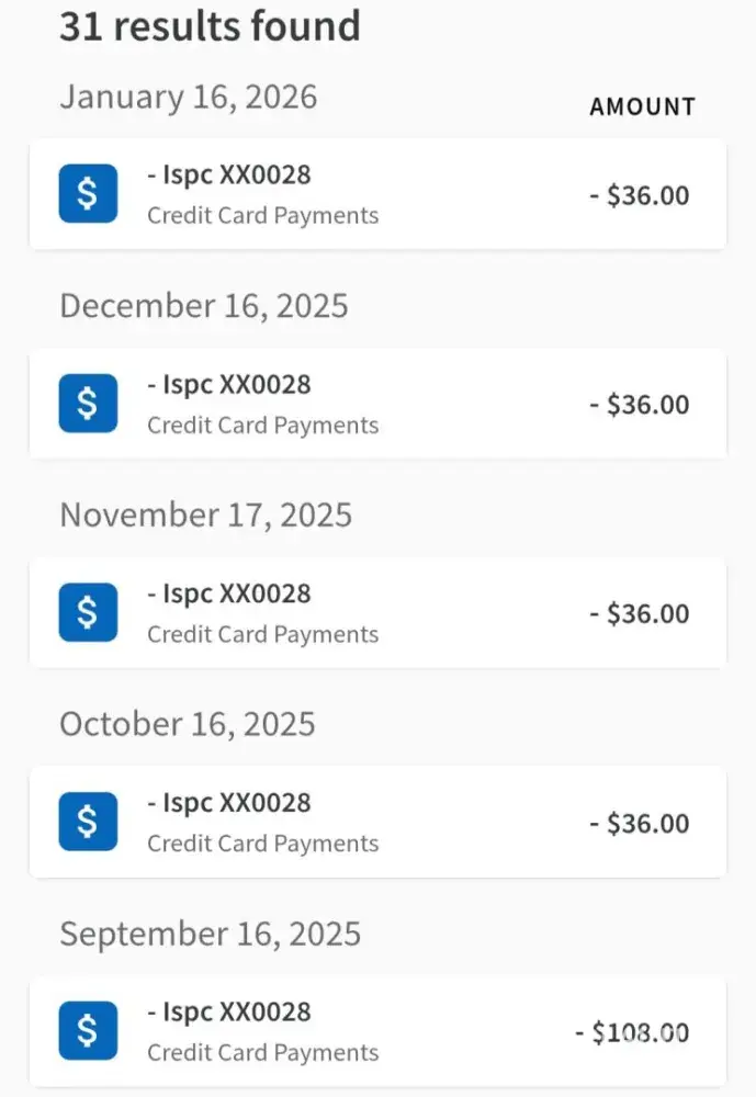 Recently, I received an alert on Feb 13, 2026 from Experian that ISPC reported my payment 30 days late when they are the ones who automatically withdraw payments from my account. Then a representative said that it could have been a report from June of 2025 that posted February 2026 when they had already reported the first time. As you can see in photo the dates of payments ISPC withdrew. They haven't even withdrew the payment Feb 2026 yet.