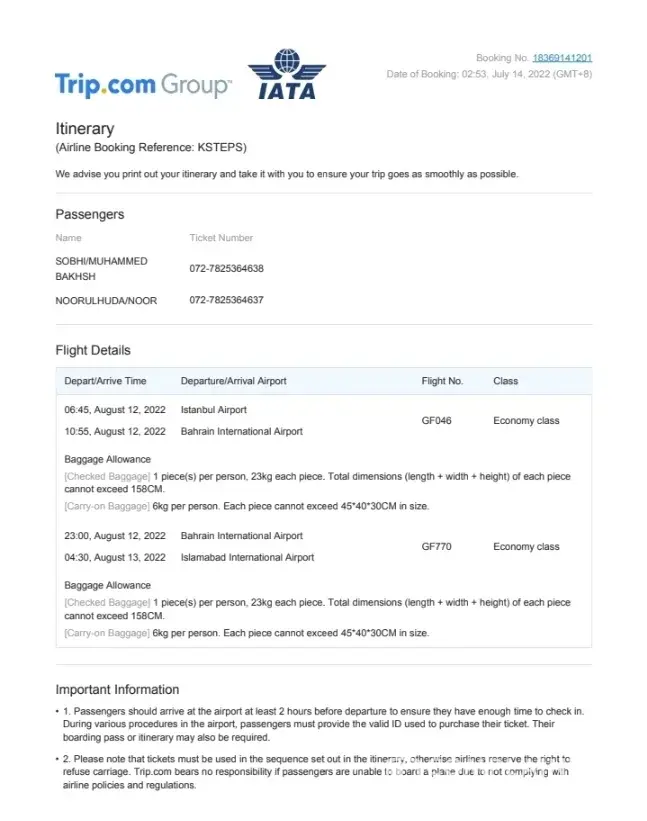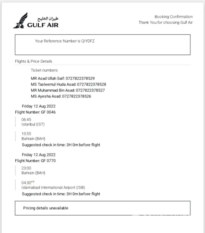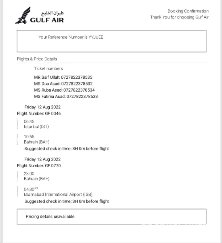 My family and I had flight reservations from Istanbul to Jeddah on January 11, 2020, on Saudi airlines (five members).Â