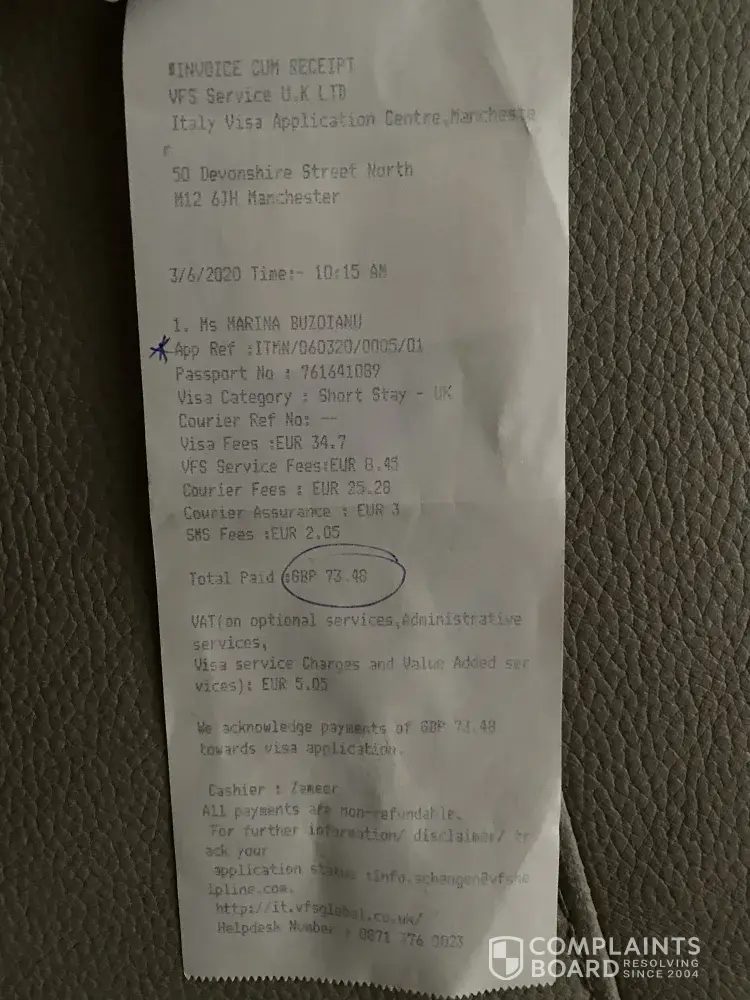 Italy visa application service refund