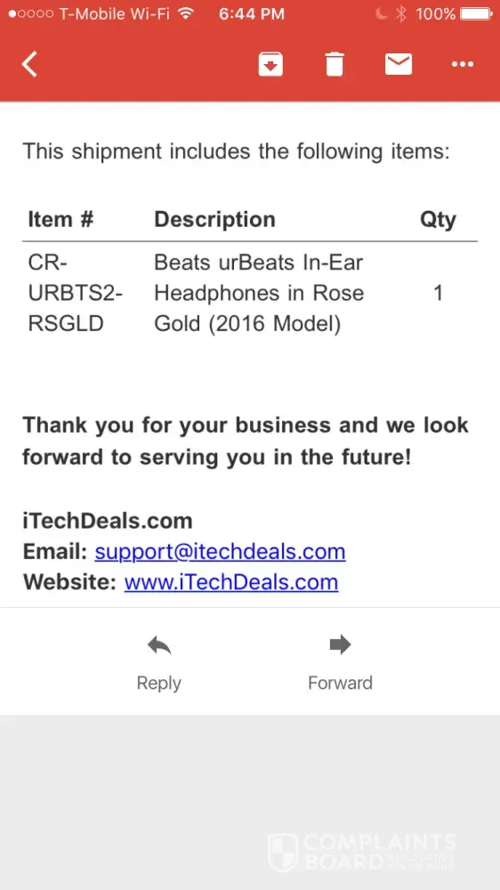 I ordered a pair of Beats by Dre riderless headphones for my son for Xmas in Dec 2016. In March of 2017 the headphones stopped charging. Knowing that it was past the 90-day return policy timeline we took them to an actual Apple Store to inquire about having them serviced. The tech at the store looked the headphones up in the Apple computer and it said that the headphones were within a year old and as long as I could prove I paid for them that they would repair them. I presented Apple with the receipt from iTech Deals and they sent the headphones out for servicing. A few days later the Apple Store Technician contacted us to report that the headphones we submitted were COUNTERFEIT and that we should immediately contact the seller to have the issue addressed.