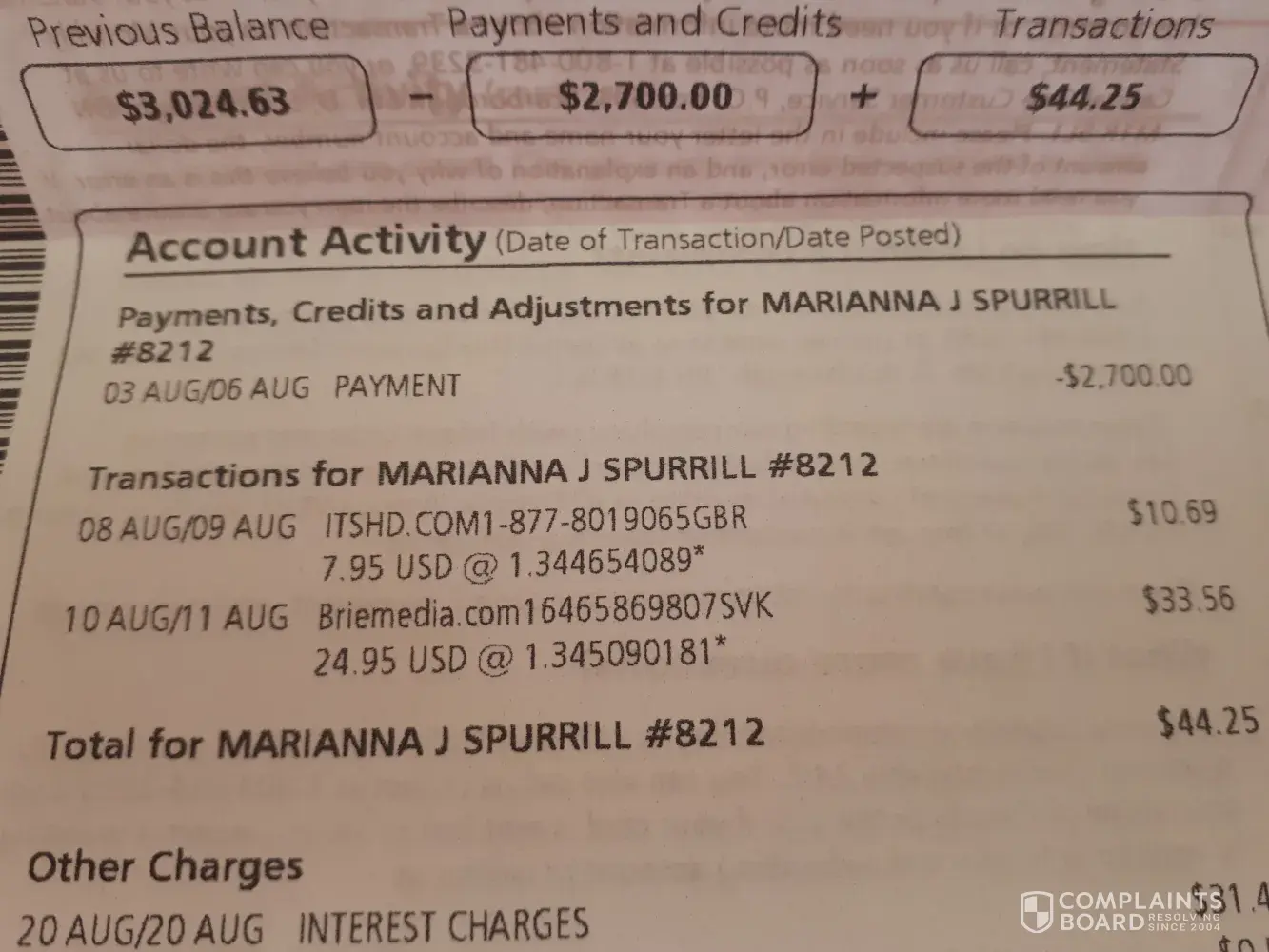 I look at my credit bill and I'm charged 10.69 for what? I'd like it back please if this is how you make your money I hope you go broke. This credit card is cancelled any way but I'd like my other money back