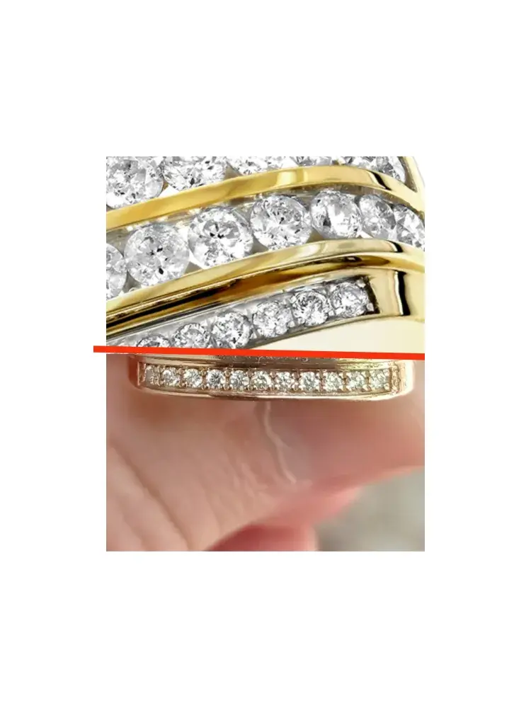We purchased a diamond pave band ring from It's hot.com. I've had the ring for three short years and already had 5 stones fall out. I just picked my ring up from the local jeweler who replaced a stone for me and asked me where I got it. I told him it was purchased through the Internet. I was told the diamonds in my ring are VERY poor quality with many of them being cracked, cloudy and full of inclusions, none of which would not have happened from normal wear and tear. He told me in all his years as a jeweler he's never seen a ring with such terrible diamonds. Such a disappointment. The one time a stone fell out during the first year I shipped it back to get it repaired and it took WEEKS to get it back.