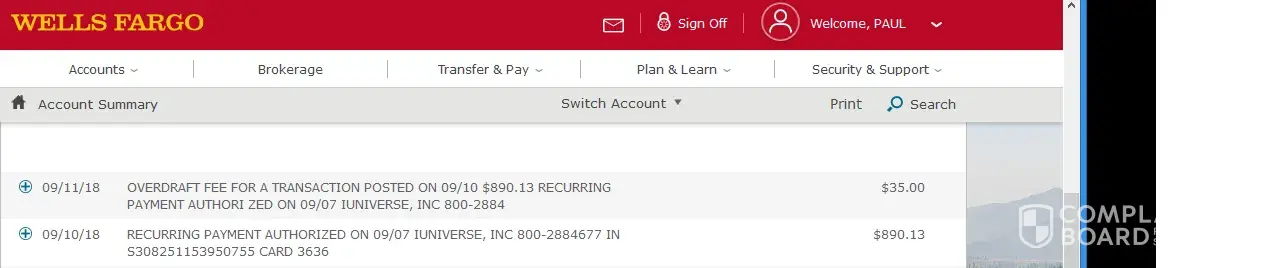 iUniverse mismanaged my account to the point of an $890.00 over draft.