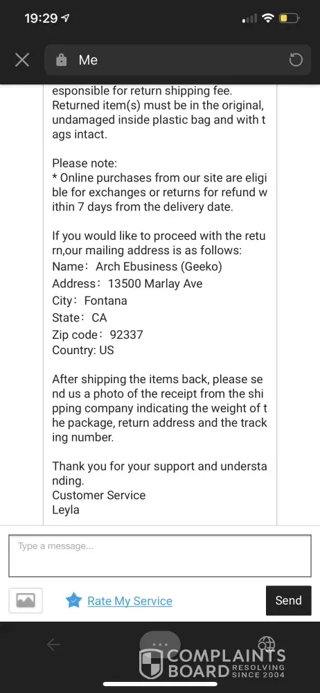 Finally I get the address to return it and I went to the post office and paid 30 euros to return. My order was around 120 euros. I sent the receipt the post office provided me with the details requested.