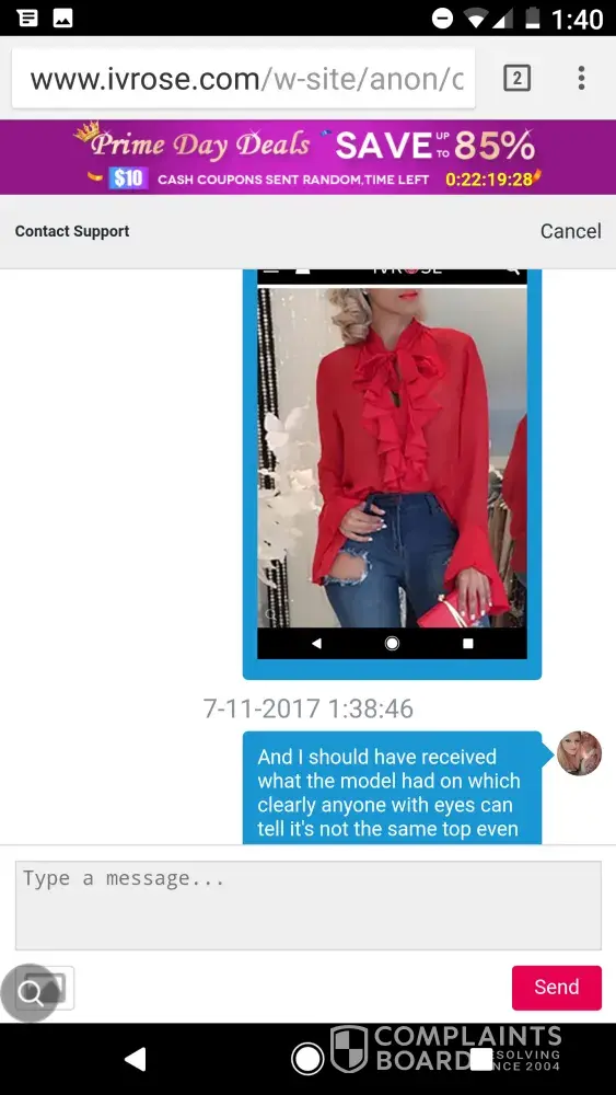 Verified customer This complaint was posted by a verified customer. Learn more