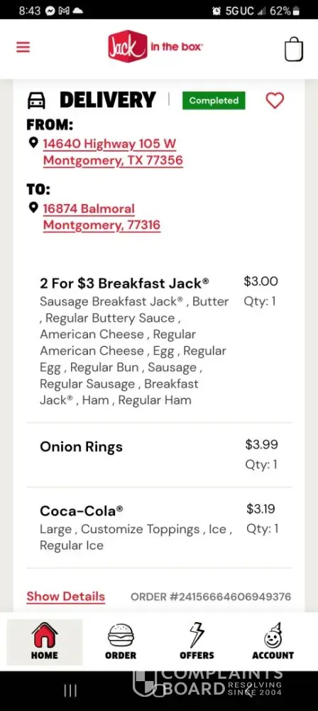 899 Jack In The Box Complaints