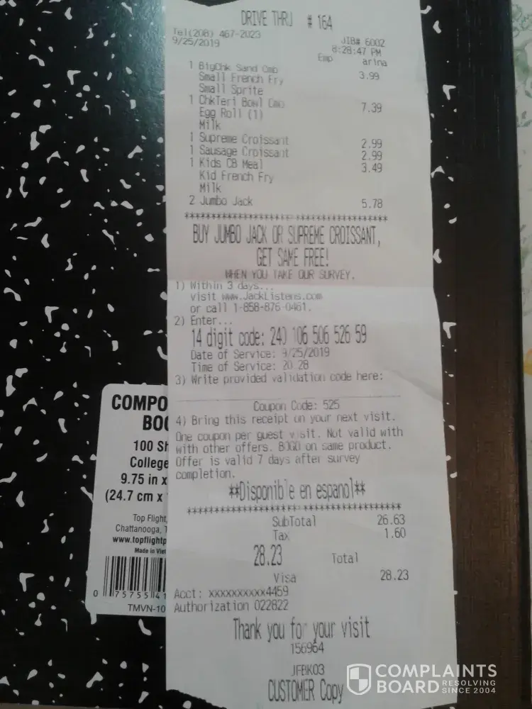 Jack In The Box 19 minute wait for drive thru & rude unhelpful employees - arina for one & others @ jtb #6002 nampa idaho