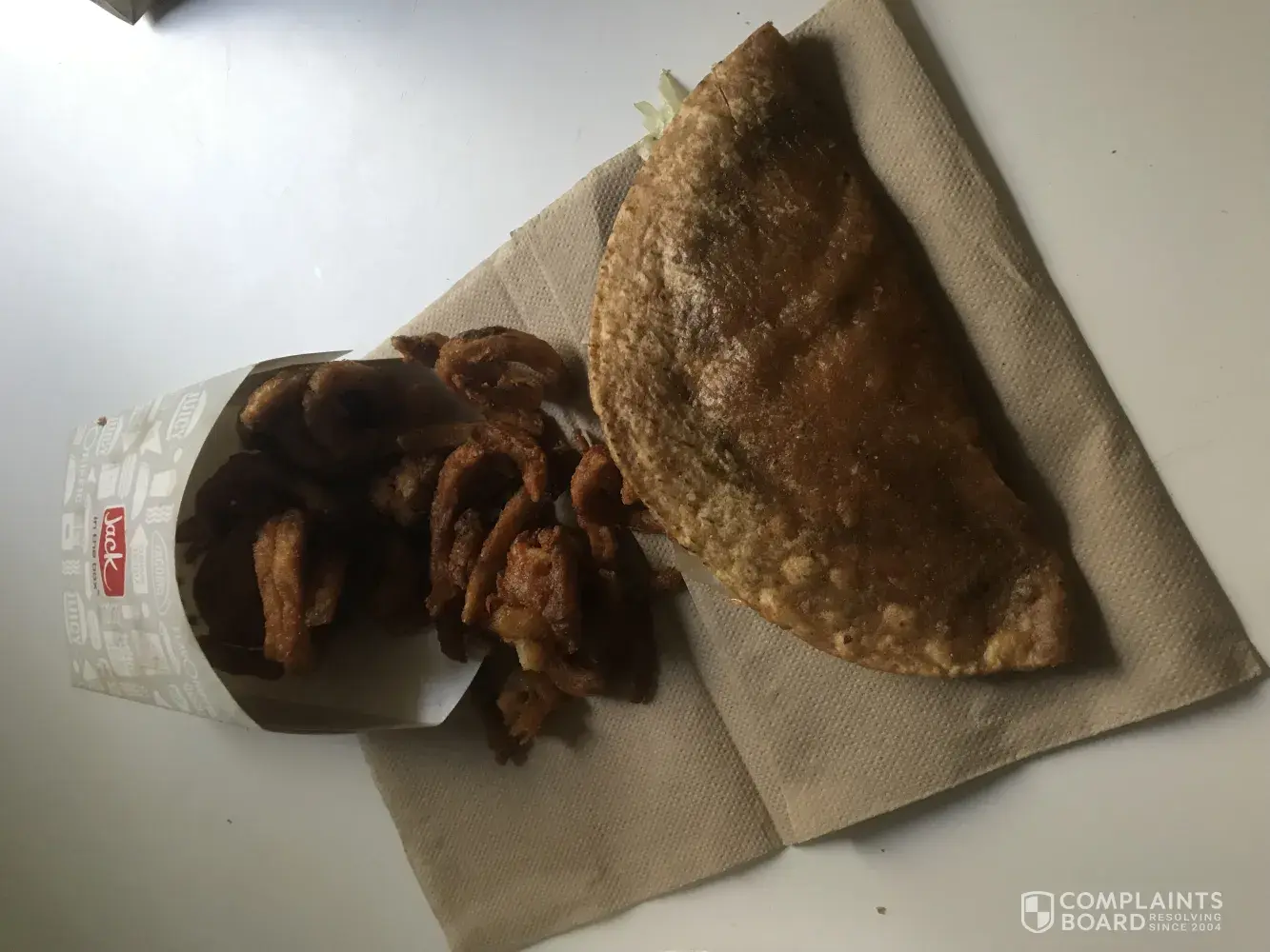 I went to the jack in the box in Dayton tx today and the tacos were brown from the grease! The curly fries were also brown and nasty! They looked and tasted like old nasty grease! I also got a jr jumbo jack with cheese and the patty was dry and nasty! It was just a big waste of money and it was disgusting! If I didn't live 15 min from the store I would have taken back for a refund! That's a shame to be served food that I know for a fact the employees would not eat!