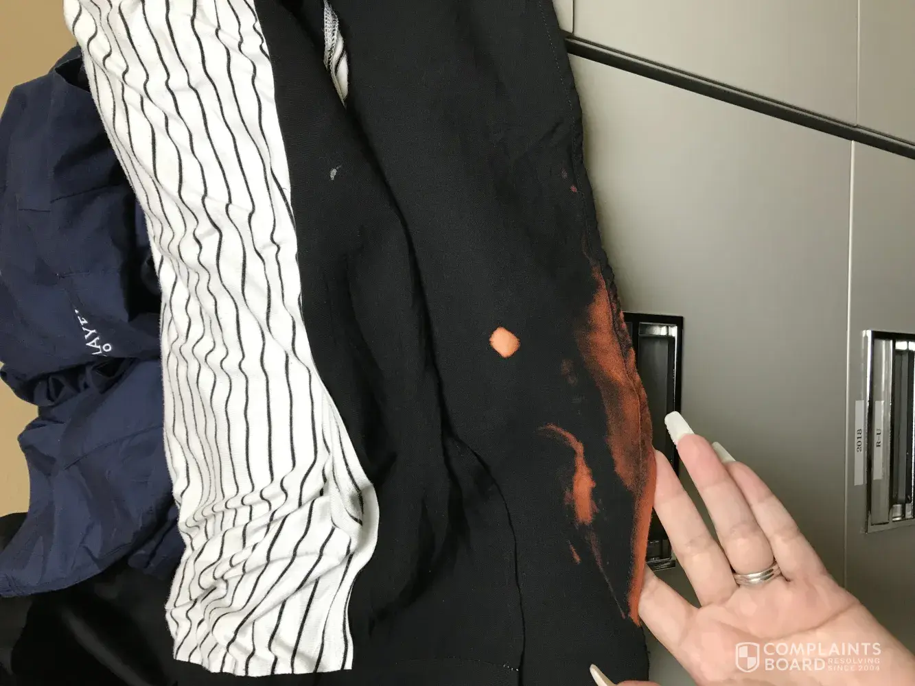 06/25/2019 approximately 9:50 am I entered JIB Location #5363 located in Palm Desert CA.. I went in to use the restroom and upon entering I did notice that restrooms had just been cleaned and the CAUTION WET FLOOR signs were up. But after using toilet and fixing myself I felt the back of my shirt drenched in what I thought was water but turned out to be bleach! I started to look around to figure out how or what had just happened and noticed there was bleach all around the back part of the toilet & floor. I immediately informed the young lady cleaning & she admitted that bleach was used & had not been washed down. That instead they let it air dry after pouring. I spoke with Manager Kevin who had no idea on how to handle the situation and instead only offered a free menu item for my drenched bleached shirt. I had to remove my shirt & continue to work in an undershirt and wait for the shirt to dry so I do not risk bleaching my car seats or any other part of my clothing. I am extremely upset and would like to speak with an higher up ASAP! This could of caused a CHEMICAL BURN on my skin and is a huge mistake on JIB part.
